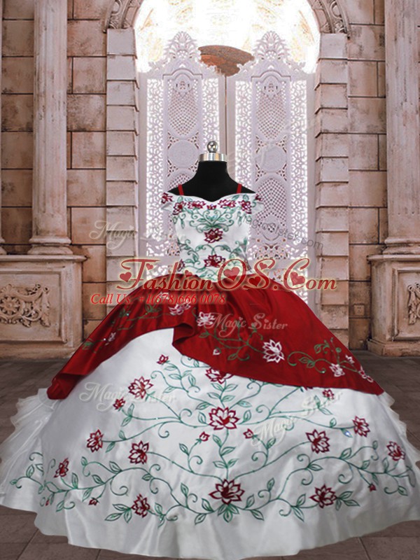 Home >  Special Occasion Dresses >  New Style Little Girl Pageant Dresses > Amazing Spaghetti Straps Sleeveless Taffeta Little Girls Pageant Gowns Embroidery and Ruffled Layers Lace Up