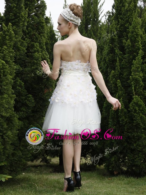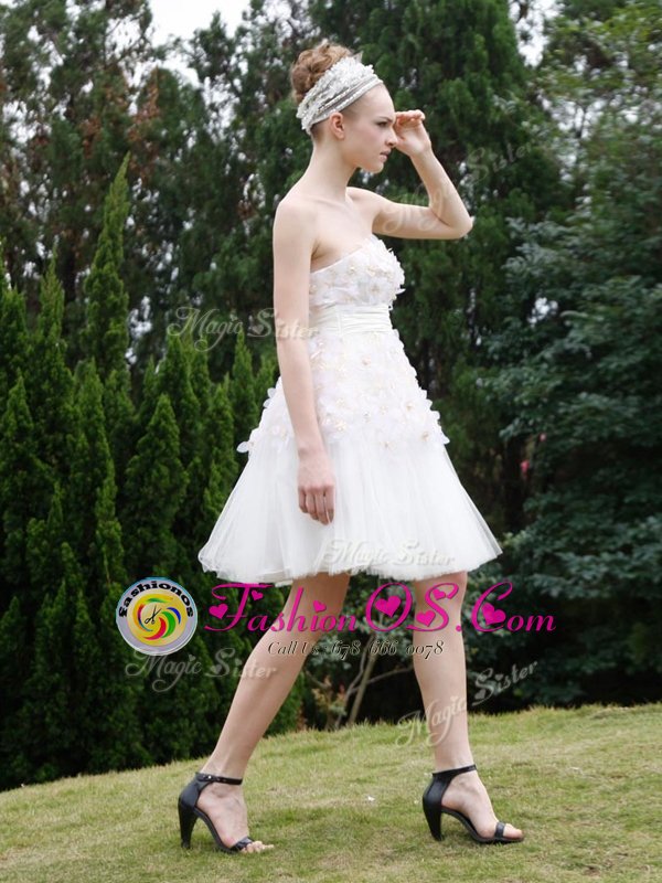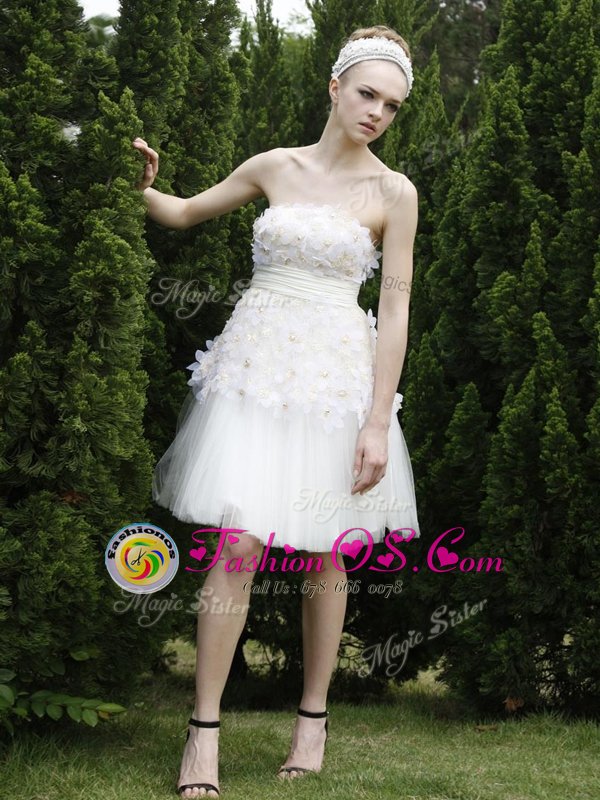 Amazing Strapless Sleeveless Zipper Prom Evening Gown White Organza