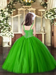 Amazing Straps Sleeveless Tulle Pageant Gowns For Girls Beading Lace Up