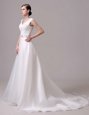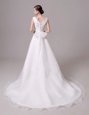 Home >  Wedding Dresses >  Popular Wedding Dresses > Amazing White Clasp Handle V-neck Beading and Sashes|ribbons Wedding Gowns Organza and Lace Sleeveless Brush Train