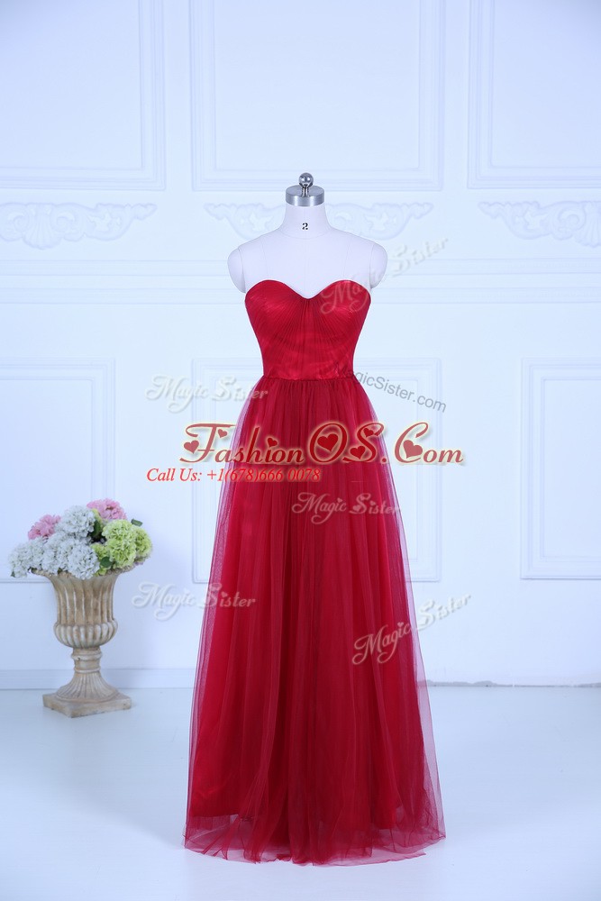 Amazing Wine Red Dama Dress for Quinceanera Wedding Party with Ruching Sweetheart Sleeveless Zipper