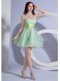 Apple Green A-line Mini-length Beading Decorate Waist Strapless Organza 2013 Prom Dress