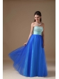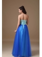 Apple Green and Royal Blue A-line Strapless Floor-length Taffeta and Tulle Beading Prom Dress