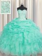 Apple Green Ball Gown Prom Dress Military Ball and Sweet 16 and Quinceanera and For with Beading and Ruffles and Pick Ups Sweetheart Sleeveless Lace Up