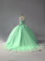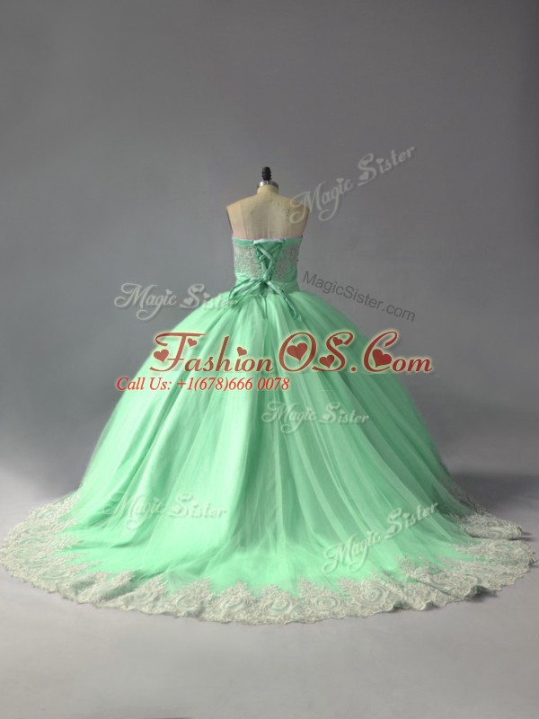 Apple Green Ball Gowns Appliques 15 Quinceanera Dress Lace Up Tulle Sleeveless