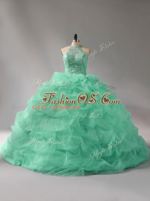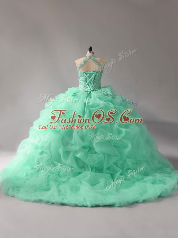 Apple Green Ball Gowns Beading and Pick Ups 15th Birthday Dress Lace Up Organza Sleeveless