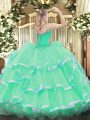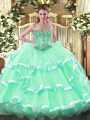 Apple Green Ball Gowns Beading and Ruffles Quinceanera Gowns Lace Up Organza Sleeveless Floor Length