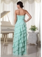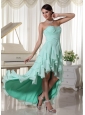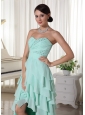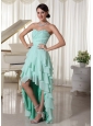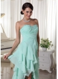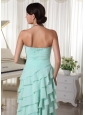 Apple Green Chiffon Layered High Low Prom Dress With Sweetheart Empire Beading and Ruch Decorate Up Bodice