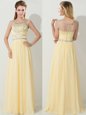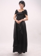 Transform yourself into a head-turning sensation by slipping into this sublime gown! Its two-piece style and elastic woven satin and chiffon material highlight your nobleness and elegance. Spaghetti straps on the top shoulder add the beauty to your upper bodice. This floor-length skirt with a sheath matching jacket is sure to capture the attention of onlookers.
