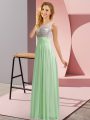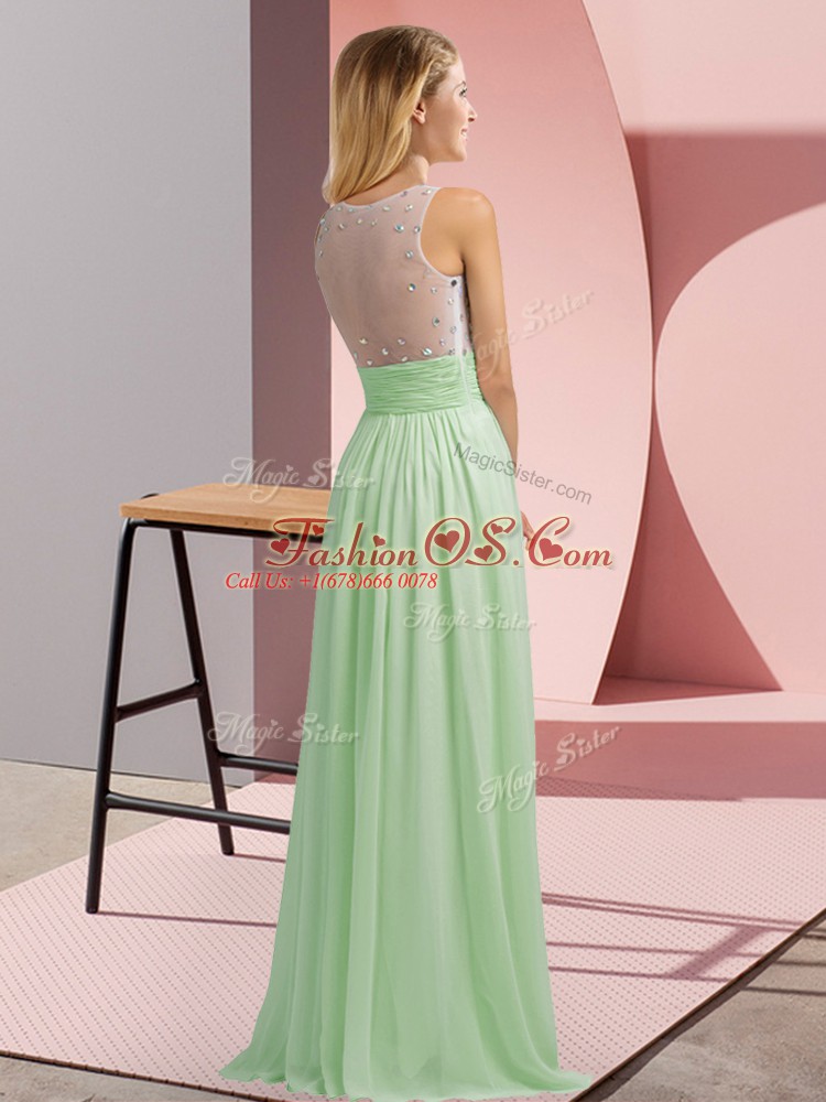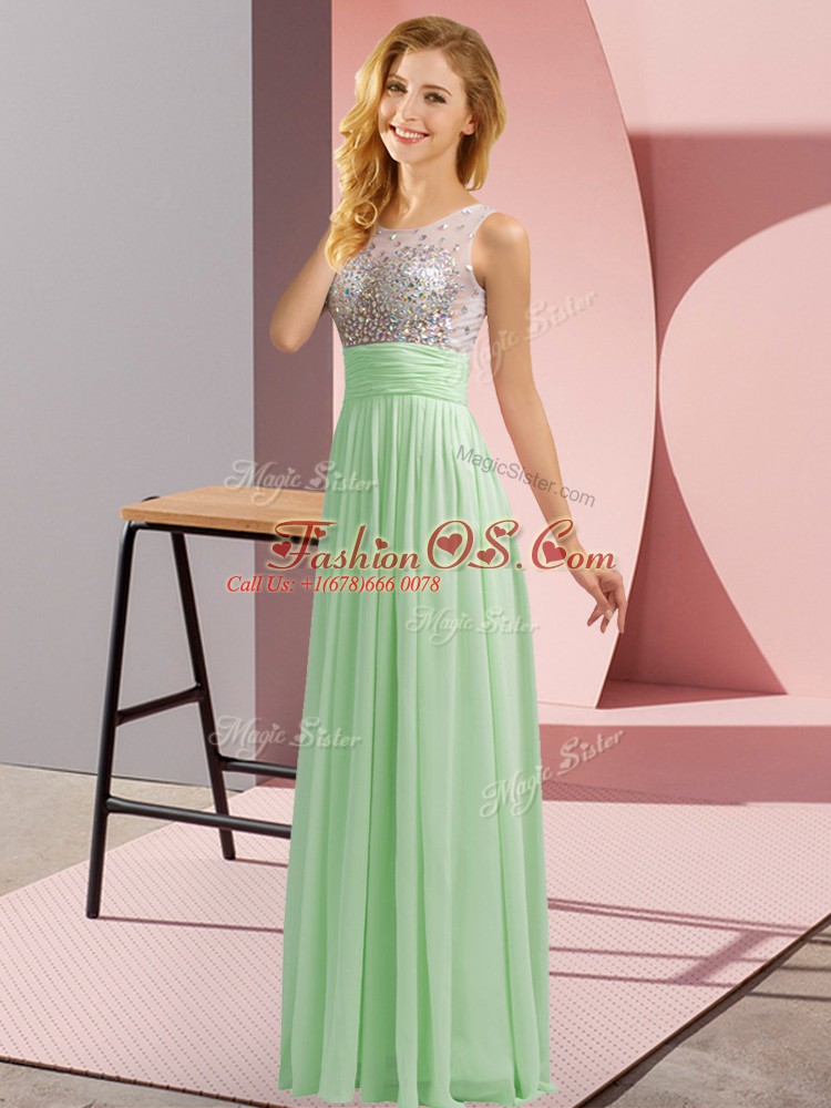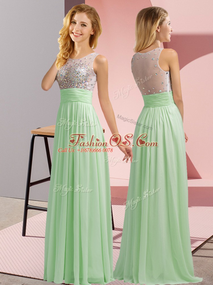Apple Green Chiffon Side Zipper Quinceanera Court of Honor Dress Sleeveless Floor Length Beading