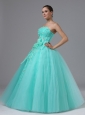 When it comes to lavish allure, you can't do better than this strapless quinceanera ball gown! It features a fitted bodice with adorable small flower embellishments.The floor-length skirt which is decorated by a bunch of hand made flowers is a long and net fabric overlay making the dress in a pretty A-line shaped. If you're looking for a high-end dress without the high-end price tag, this is definitely one you should consider.