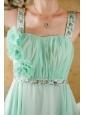 Home >  Prom Dresses >  Cheap Prom Dresses > Apple Green Empire Straps Brush Train Chiffon Beading and Hand Made Flowers Prom / Evening Dress