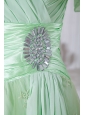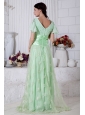 Apple Green Empire V-neck Beading Prom / Evening Dress Brush Train Chiffon