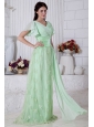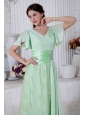Home >  Prom Dresses >  Modest Prom Dresses > Apple Green Empire V-neck Beading Prom / Evening Dress Brush Train Chiffon