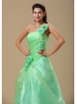 Home >  Special Occasion Dresses >  Dama Dresses for Quinceanera > Apple Green Hand Made Flowers and Ruched Bodice Quinceanera dress