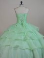 Home >  Quinceanera Dresses >  Cute Quinceanera Dresses > Apple Green Lace Up Quinceanera Gown Ruffled Layers and Ruching and Hand Made Flower Sleeveless Floor Length