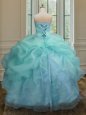 Apple Green Lace Up Sweetheart Ruffles and Sequins Quinceanera Dresses Organza Sleeveless