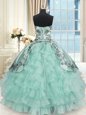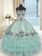 Apple Green Lace Up Vestidos de Quinceanera Beading and Embroidery and Ruffled Layers Sleeveless Floor Length