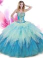 Apple Green Organza Lace Up Sweetheart Sleeveless Floor Length 15th Birthday Dress Beading and Ruffles
