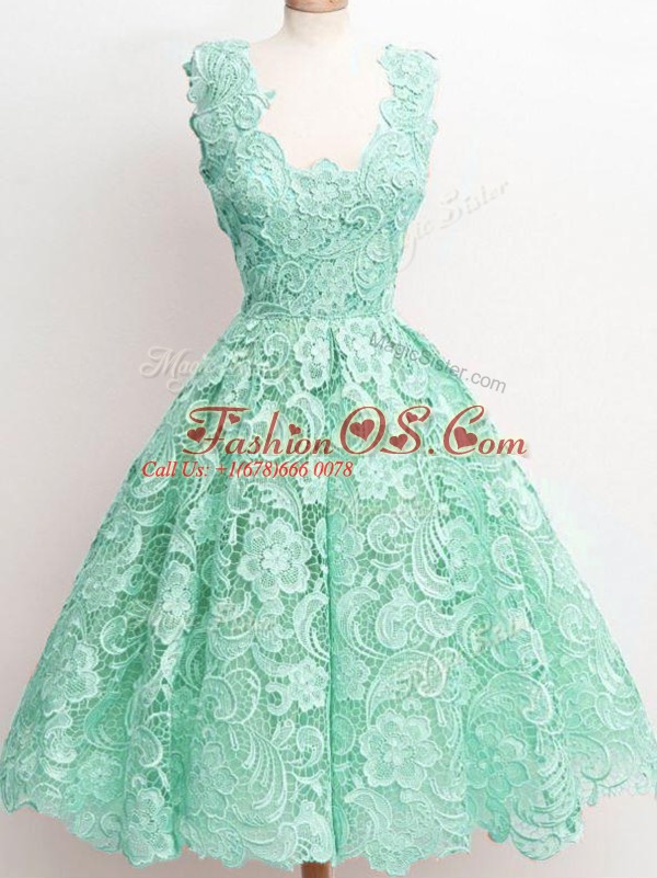 Apple Green Sleeveless Lace Knee Length Quinceanera Court Dresses