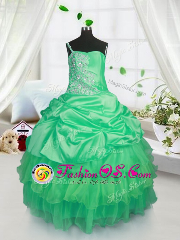 Home >  Special Occasion Dresses >  New Style Little Girl Pageant Dresses > Apple Green Strapless Lace Up Beading and Ruffled Layers and Pick Ups Little Girl Pageant Dress Sleeveless