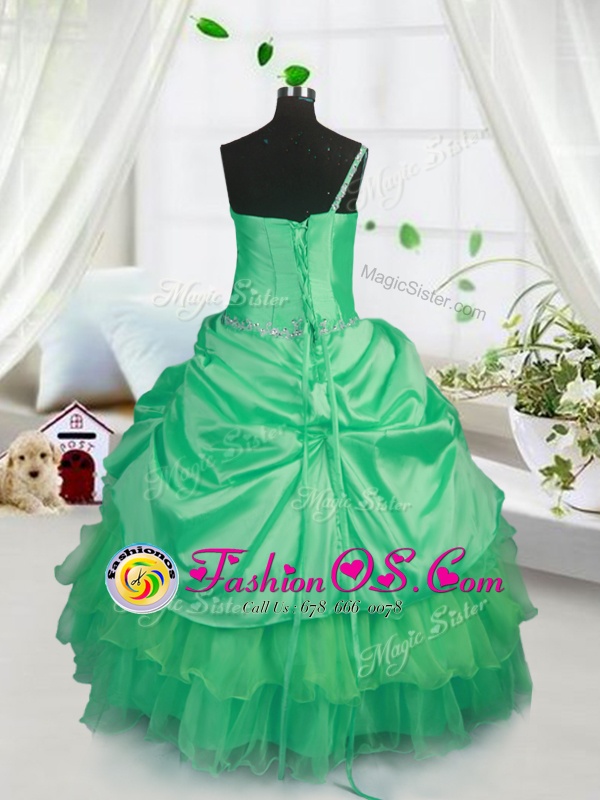 Apple Green Strapless Lace Up Beading and Ruffled Layers and Pick Ups Little Girl Pageant Dress Sleeveless