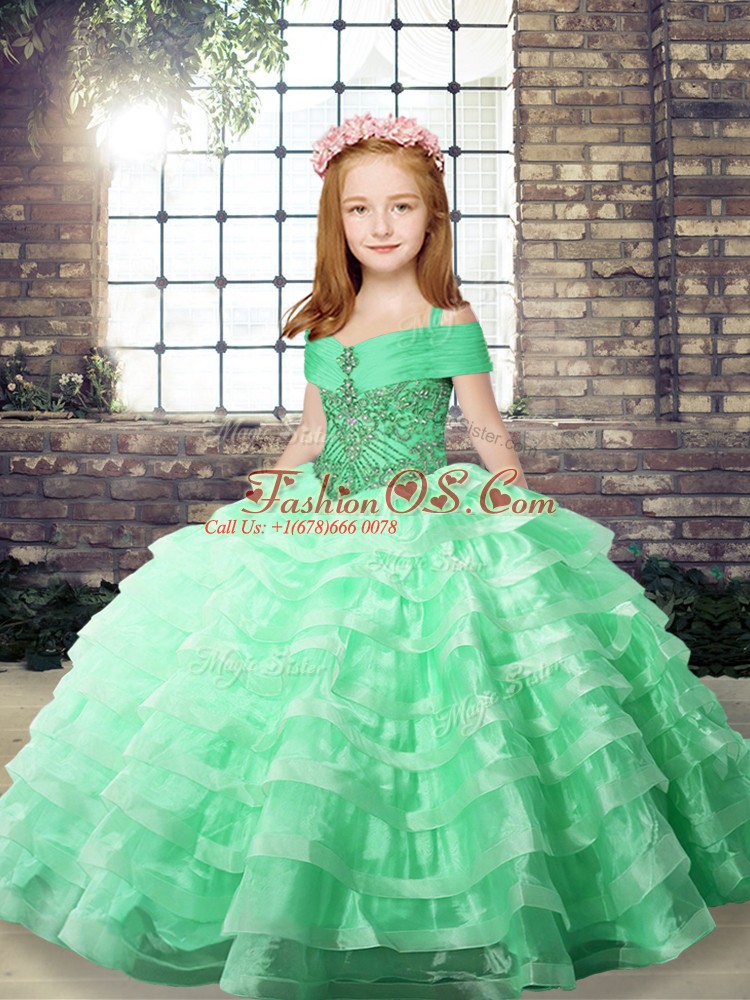 Apple Green Straps Lace Up Beading and Ruffled Layers Kids Pageant Dress Sleeveless