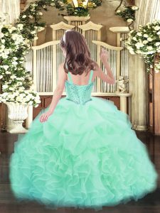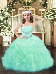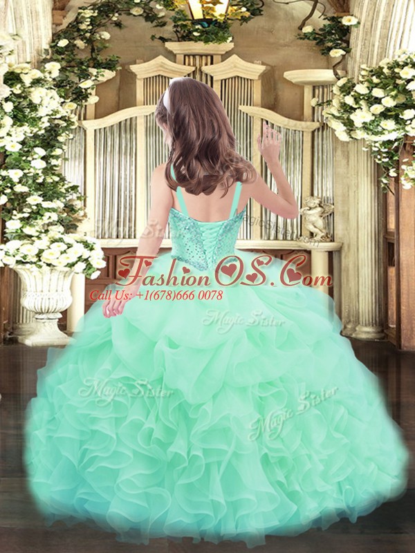 Apple Green Straps Lace Up Beading and Ruffles and Pick Ups Pageant Dress for Teens Sleeveless