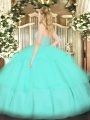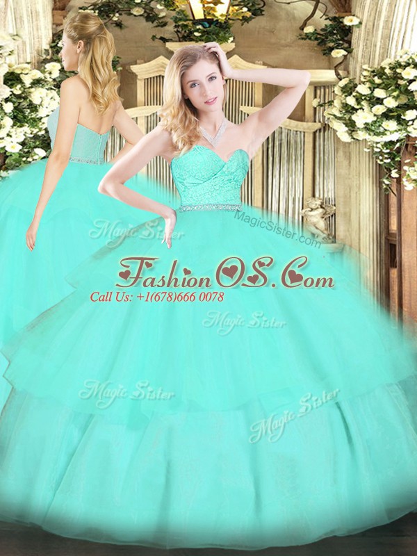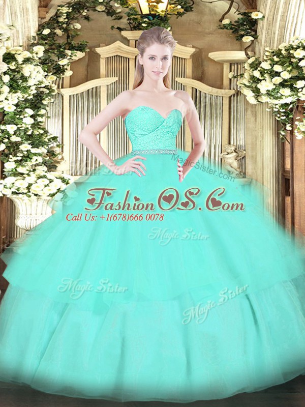 Apple Green Sweetheart Neckline Beading and Lace and Ruffled Layers 15th Birthday Dress Sleeveless Zipper