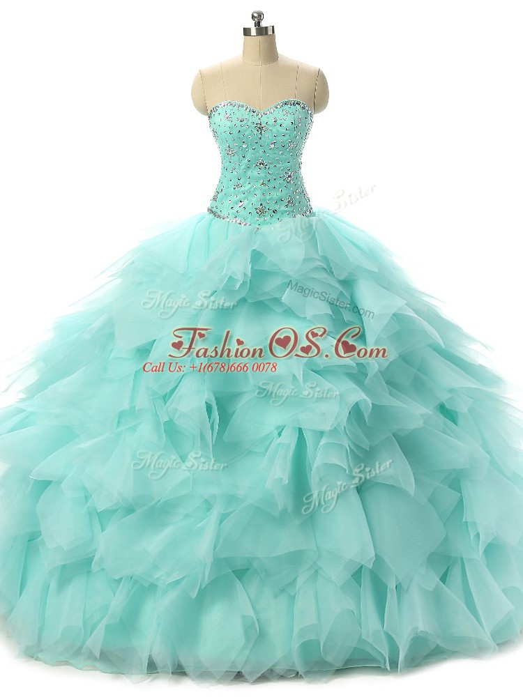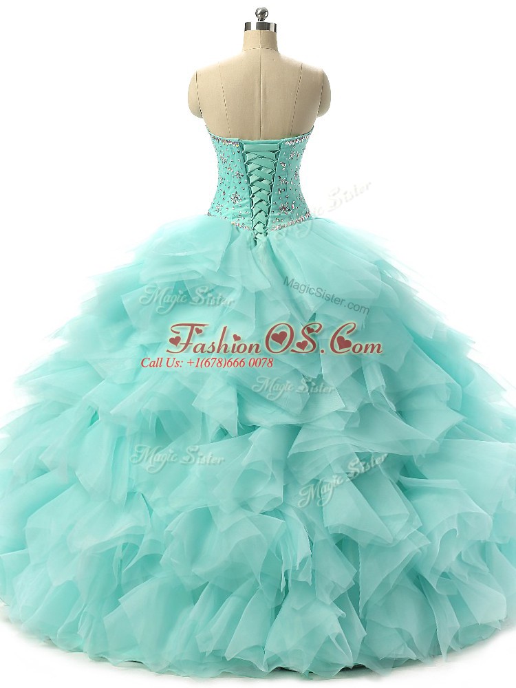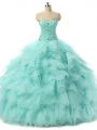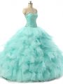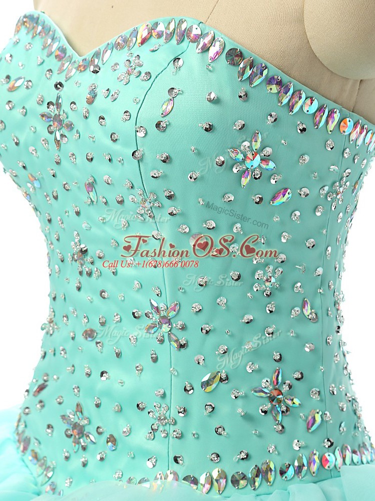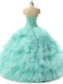 Apple Green Sweetheart Neckline Beading and Ruffles Quinceanera Dress Sleeveless Lace Up