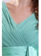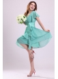 Apple Green V-neck Chiffon Prom Dress with Short Sleeves