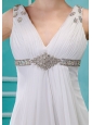 Apple Valley Beading and Ruch Decorate Bodice V-neck Chapel Train White Chiffon 2013 Wedding Dress