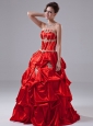 Appliques A-Line Taffeta Floor-length Strapless Quinceanea Dress Red