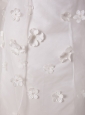 Sparkling sweet lends this dazzling flower girl dress plenty of style! Intricate patterns spice up the style of the whole dress, which culminates in the top and the bottom. The little V neck bodice with a simple waistband cinched closely to your baby's waist part. The skirt is full with layers of textured organza for a enchanting look. Floral appliques are perfectly decorated in the skirt. A wonderful choice for your little baby!