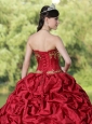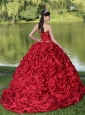 Appliques and Pick-ups Wine Red Brush Train Exquisite Style For 2013 Quinceanera Dress