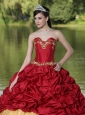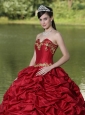 Home >  Quinceanera Dresses >  Perfect Quinceanera Dresses > Appliques and Pick-ups Wine Red Brush Train Exquisite Style For 2013 Quinceanera Dress