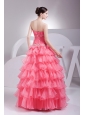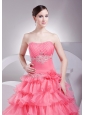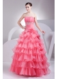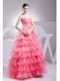 Home >  Prom Dresses >  Beautiful Prom Dresses > Appliques and Ruching Decorate Bodice Ruffled Layers Watermelon Red 2013 Prom Dress