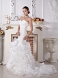 Home >  Wedding Dresses >  Popular Wedding Dresses > Appliques and Ruffles Decorate Bodice Brush Train Mermaid Sweetheart Neckkline 2013 Wedding Dress