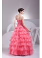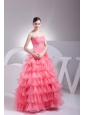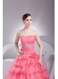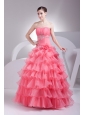 Home >  Quinceanera Dresses >  Luxurious Quinceanera Dresses > Appliques and Ruffles Layered Strapless Watermelon Quinceanera Dress