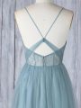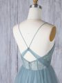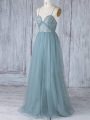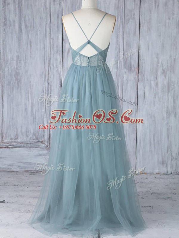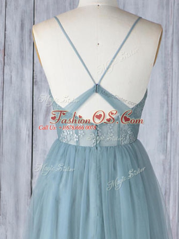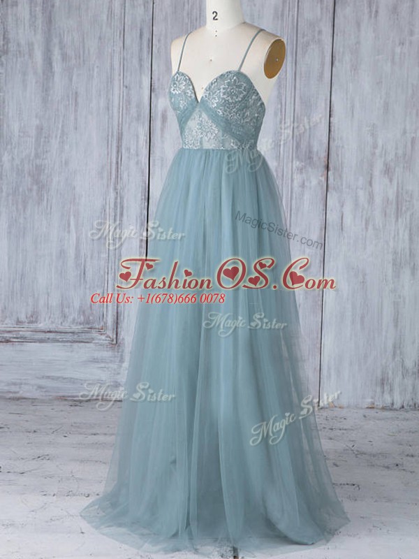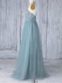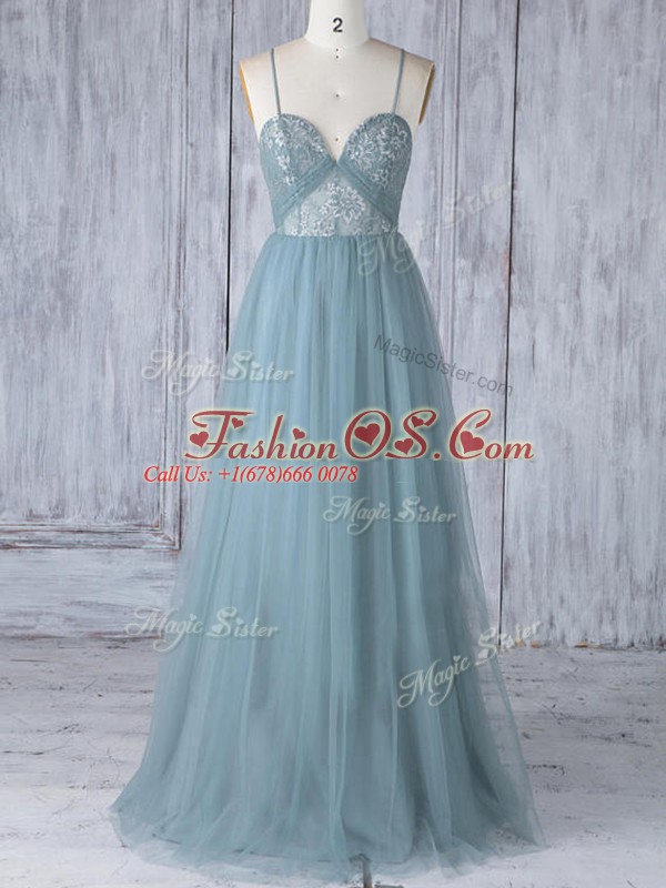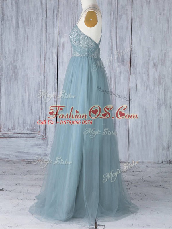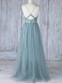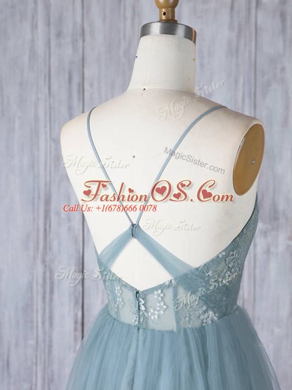 Appliques Bridesmaids Dress Grey Criss Cross Sleeveless Floor Length