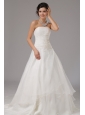 Home >  Wedding Dresses >  Beautiful Wedding Dresses > Appliques Custom Made Ruched Bodice Wedding Dress With Organza A-line