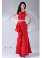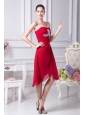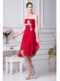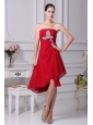 Appliques Decorate Bodice Strapless Chiffon Asymmetrical Wine Red 2013 Prom Dress