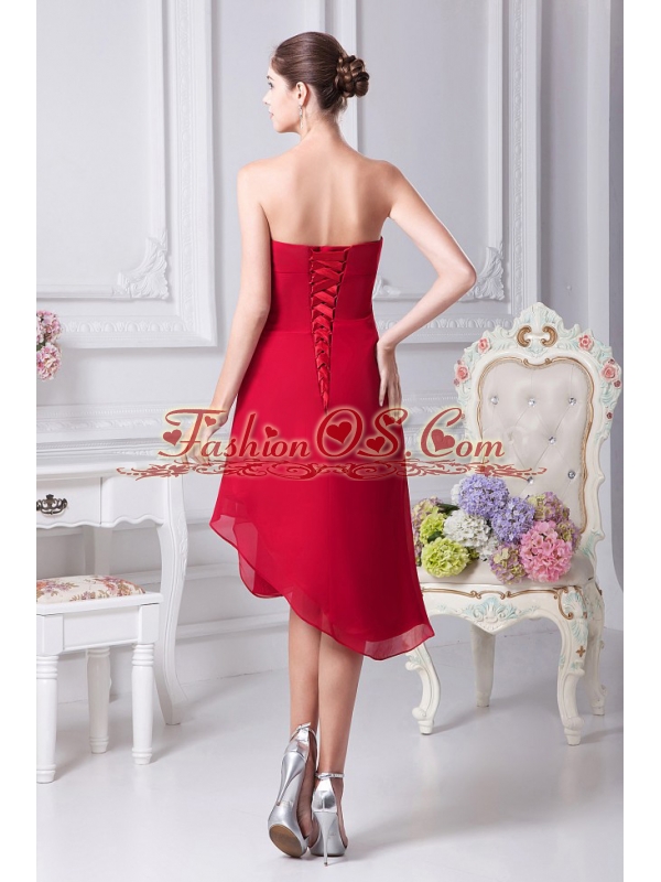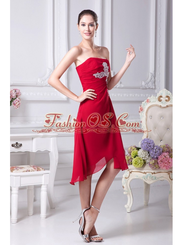 Home >  Prom Dresses >  Beautiful Prom Dresses > Appliques Decorate Bodice Strapless Chiffon Asymmetrical Wine Red 2013 Prom Dress