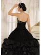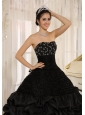 Home >  Quinceanera Dresses >  Puffy Quinceanera Dresses > Appliques Decorate On Taffeta Strapless Black Quinceanera Dress In Yacuiba