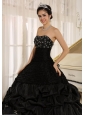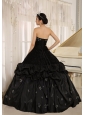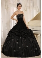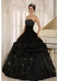Appliques Decorate On Taffeta Strapless Black Quinceanera Dress In Yacuiba