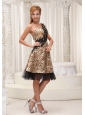 This dress will make you the talk of the big day! The animal print will make you more glamorous and sexy. This fantastic one shoulder dress has black appliques cross the bodice. The knee length skirt is unique shaped by different fabric which makes the dress wonderful. The zipper up back form a sexy half open back. This is a amazing choice for someone wanting something a little different for their special occasion.