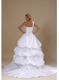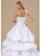 Appliques Decorate One Shoulder Neckline and Bodice Pick-ups Taffeta Ball Gown 2013 Wedding Dress Chapel Train
