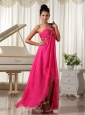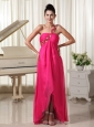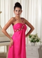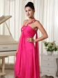 The party starts the moment you arrive in this elegant one shoulder prom dress. A fabulous high-low dress for prom features a one shoulder bodice with ruching on the bust area. The strap is encrusted with colored floral appliqes and continues to wrap one side of the bust, creating an exquisite look. The zipper up back and the chiffon fabric give the dress a feeling of pure and fresh. If you can't decide and if you want a long prom gown dress, get the best of both worlds with this hot pink dress.