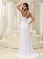 Sexy, sexy and sexy are the only words to describe this dress. This dress is made of chiffon with a sweetheart neckline and one shoulder. The strap extends across the back of the gown crisscrossing each other over exposed skin. Ruches embellish the bodice of the dress. The high slit adds the charm. The hidden zipper in the back of the dress secures it in place and makes for easy off and on.