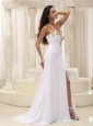 Home >  Prom Dresses >  Beautiful Prom Dresses > Appliques Decorate Shoulder Ruched Bodice High Slit For Prom Dress In Washington